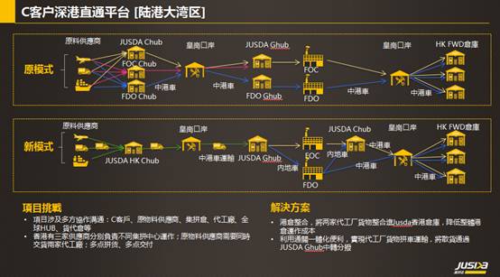 依靠在深港大灣區(qū)成熟的網(wǎng)絡(luò)資源和成熟的平臺(tái)化運(yùn)營(yíng)模式,借助一體化通關(guān)的便利,準(zhǔn)時(shí)達(dá)向C客戶推介了直通平臺(tái)的概念,將分散的貨物和數(shù)據(jù)統(tǒng)一集成,協(xié)同管理。