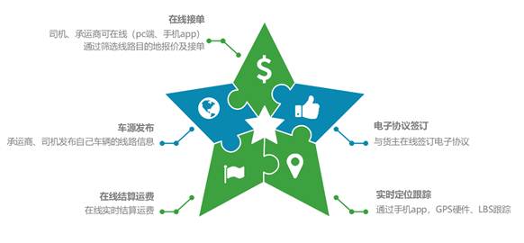 2、依托無(wú)車承運(yùn)試點(diǎn)工作,運(yùn)用現(xiàn)代信息化技術(shù)進(jìn)行車輛定位、車貨匹配、在途跟蹤和異常報(bào)警等等,提高了企業(yè)物流組織和管理效率。