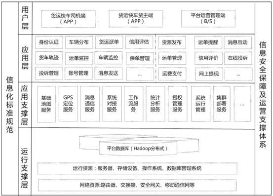 應用支撐層:提供可重用基礎構件, 實現系統基礎核心功能,實現與外部軟硬件集成融合功能,如貨車GPS位置定位等 運行支撐層:主要是對原始數據(分布式數據庫或文本文件等存放數據的形式)進行存儲以及提供硬件設備運行環境。