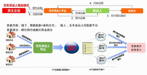 (2)平安銀行與我公司以無車承運人平臺為基礎聯合打造并開通了代收貨款功能,在平安銀行設立實體銀行監管賬戶,以先進的線上+線下的收款方式及快速的跨行實時代付功能,完成整個代收貨款的全流程,有效的遏制了物流公司跑路給社會帶來的負面影響及不安定因素,真正通過無車承運人達到整合整個貨運市場的目標。