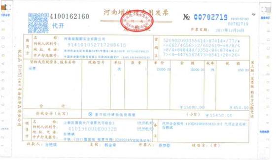 2)與河南省國家稅務局貨運業務網絡服務平臺對接,已獲得實際承運人3%的增值稅專用進項抵扣發票,已實現運單實時上傳,河南省國家稅務局可實時監控我公司運單情況。