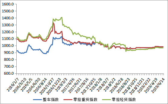 本周(2019年6月17日-6月21日),由中國物流與采購聯合會和林安物流集團聯合調查的中國公路物流運價指數980.81點,與上周基本持平。