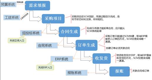 沒有全局角度對(duì)供應(yīng)鏈系統(tǒng)各層次、各角度、各因素進(jìn)行統(tǒng)籌規(guī)劃,對(duì)供應(yīng)鏈全過程業(yè)務(wù)缺少統(tǒng)一的管理規(guī)范,與省內(nèi)ERP系統(tǒng)、工建系統(tǒng)、預(yù)算系統(tǒng)、報(bào)銷系統(tǒng)、合同系統(tǒng)、統(tǒng)一信息平臺(tái)和集團(tuán)供應(yīng)鏈系統(tǒng)、電子招投標(biāo)系統(tǒng)、主數(shù)據(jù)平臺(tái)等系統(tǒng)之間沒有完全打通,IT業(yè)務(wù)流程固化和信息化手段建設(shè)比較薄弱。
