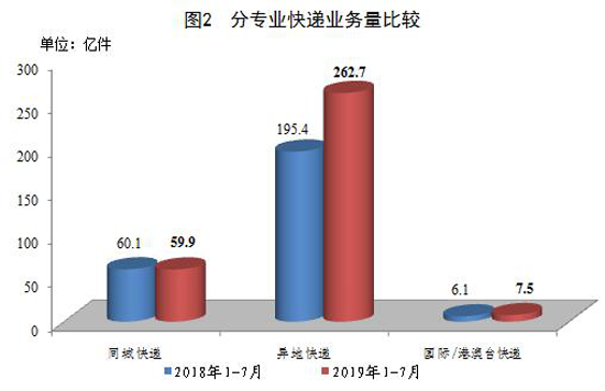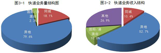 1-7月份,同城、異地、國際/港澳臺快遞業(yè)務量分別占全部快遞業(yè)務量的18.1%、79.6%和2.3%;業(yè)務收入分別占全部快遞收入的10.4%、52.7%和10%。與去年同期相比,同城快遞業(yè)務量的比重下降4.9個百分點,異地快遞業(yè)務量的比重上升4.9個百分點,國際/港澳臺業(yè)務量的比重基本持平。