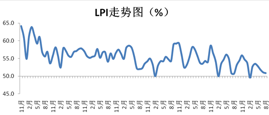 中國物流與采購聯合會發布的2019年8月份中國物流業景氣指數為50.9%,較上月回落0.2個百分點;中國倉儲指數為54.3%,較上月回升4.5個百分點。