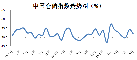 中國(guó)物流與采購(gòu)聯(lián)合會(huì)發(fā)布的2019年9月份中國(guó)物流業(yè)景氣指數(shù)為53.8%,較上月回升2.9個(gè)百分點(diǎn);中國(guó)倉(cāng)儲(chǔ)指數(shù)為52%,較上月回落2.3個(gè)百分點(diǎn)。