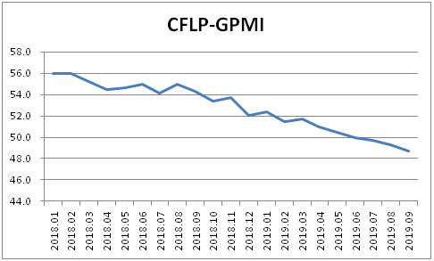 2019年9月份,美洲制造業PMI較上月下降0.8個百分點至48.6%,連續2個月在50%以下,創出年內新低。從主要國家看,巴西、加拿大和墨西哥制造業均有不同程度回升,但占比最大的美國制造業PMI再次明顯下降,帶動美洲制造業PMI明顯回落。指數變化表明,美洲制造業繼續明顯下滑,且下降速度較快。