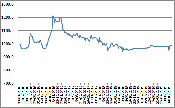 本周(2019年10月28日-11月1日),由中國物流與采購聯(lián)合會和林安物流集團聯(lián)合調查的中國公路物流運價指數(shù)983.22點,較上周小幅回落0.04%。
