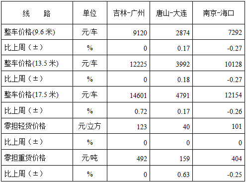 表1 本周部分線路平均價格及環(huán)比情況對比