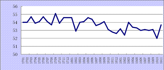 2017年1月-2019年11月綜合PMI產(chǎn)出指數(shù)走勢圖