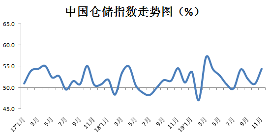 中國物流與采購聯(lián)合會發(fā)布的2019年11月份中國物流業(yè)景氣指數(shù)為58.9%較上月回升4.7個百分點;中國倉儲指數(shù)為54.4%,較上月回升3.5個百分點。