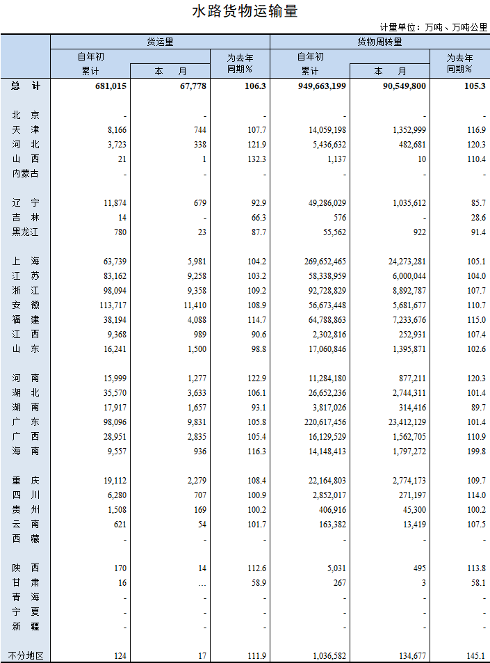 2019年11月水路貨物運(yùn)輸量