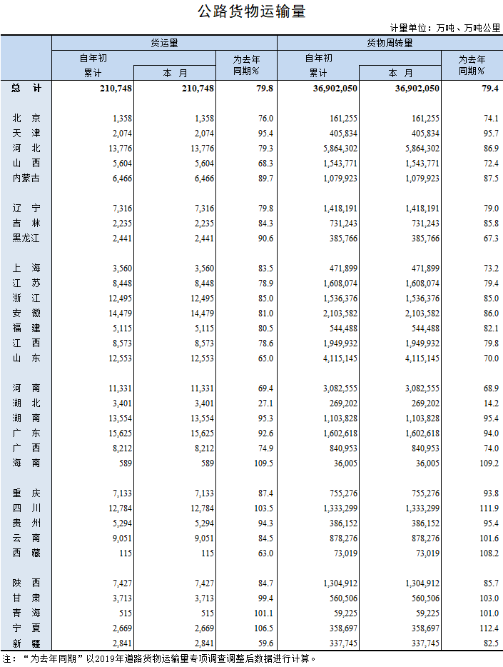 2020年1月公路貨物運輸量
