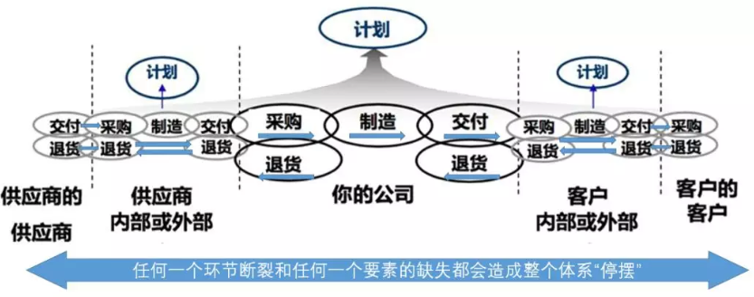 從微觀層面來講,對企業供應鏈的整個流程,包括計劃、采購、制造、交付、回收等各個環節都帶來了重要的影響(見圖一)。根據SCOR模型或者美國供應鏈管理專業協會(CSCMP)的供應鏈管理流程標準來看,在供應鏈中任何一個環節斷裂或任何一個要素的缺失都會造成整個體系的“停擺”。