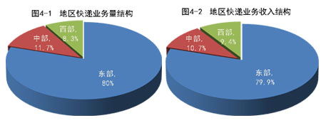 1-2月,東、中、西部地區快遞業務量比重分別為80%、11.7%和8.3%,業務收入比重分別為79.9%、10.7%和9.4%。與去年同期相比,東部地區快遞業務量比重上升0.9個百分點,快遞業務收入比重上升0.4個百分點;中部地區快遞業務量比重下降1.3個百分點,快遞業務收入比重下降0.8個百分點;西部地區快遞業務量比重上升0.4個百分點,快遞業務收入比重上升0.4個百分點。