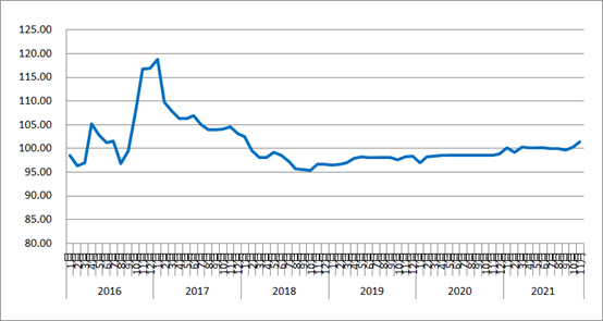 2021年11月份,由中國物流與采購聯合會和林安物流集團聯合調查的中國公路物流運價指數為101.5點,比上月回升1.21%,比去年同期增長3%。從各周指數看,第一、二周運價指數環比回升,第三、四周運價指數環比回落。