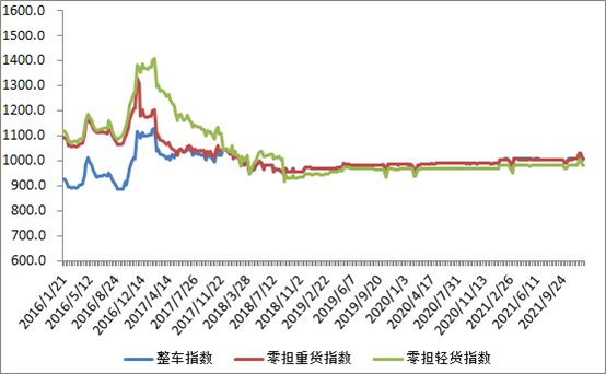 分車型看,零擔重貨指數變化較為明顯。其中,整車指數為1007.69點,與上周基本持平;零擔輕貨指數為980.69點,與上周基本持平;零擔重貨指數為1007.13點,比上周回升0.1%。