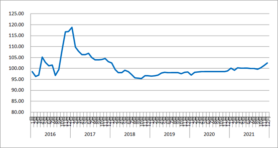 2021年12月份,由中國物流與采購聯合會和林安物流集團聯合調查的中國公路物流運價指數為102.5點,比上月回升0.99%,比去年同期增長3.6%。從各周指數看,第一、三、四周運價指數環比回升,第二、五周運價指數環比回落。