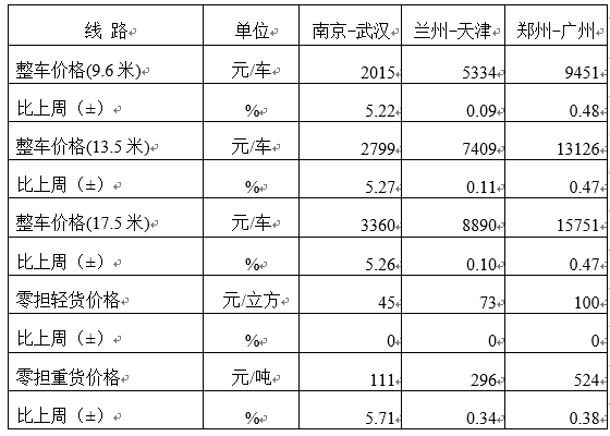 表1 本周部分線路平均價(jià)格及環(huán)比情況對比