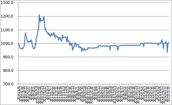 圖1 2016-2022年各周中國(guó)公路物流運(yùn)價(jià)指數(shù)