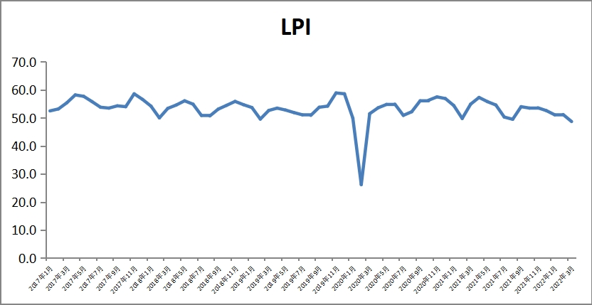中國物流與采購聯合會發布的2022年3月份中國物流業景氣指數為48.7%,較上月回落2.5個百分點。分項指數也多有回落。指數走勢變化顯示,3月份受全國多點散發疫情和地區防控政策差異影響,物流供需增速趨緩,跨區流通難度加大,物流促通保暢能力下降,供應鏈上下游復蘇受阻。