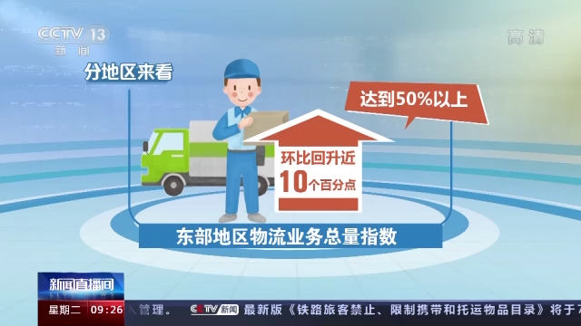分地區來看,東部地區物流業務總量指數環比回升近10個百分點,達到50%以上。尤其是長三角區域貨運量持續回暖,推動服務價格保持連續上漲。