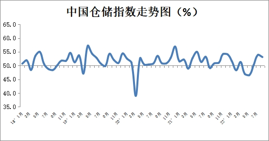 中國物流與采購聯合會發布的2022年7月份中國物流業景氣指數為48.6%,較上月回落3.5個百分點;中國倉儲指數為53.1%,較上月回落0.8個百分點。