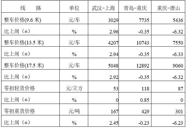 分車型看,各車型指數(shù)環(huán)比總體回落。其中,整車指數(shù)為1024.82點(diǎn),比上周回落0.09%;零擔(dān)輕貨指數(shù)為1026.78點(diǎn),與上周基本持平;零擔(dān)重貨指數(shù)為1024.44點(diǎn),比上周回落0.1%。