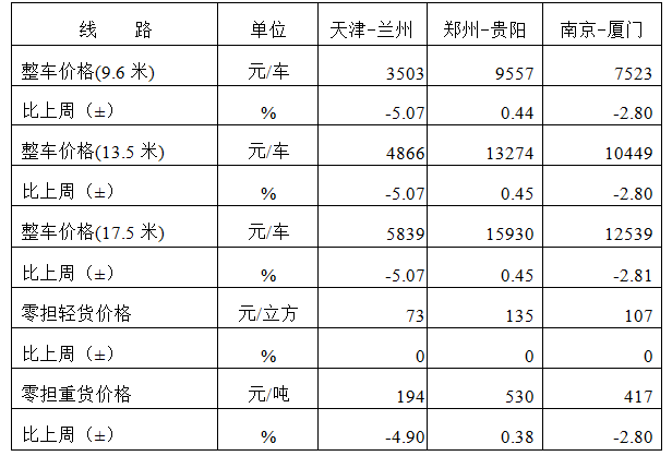 表1 本周部分線路平均價格及環(huán)比情況對比
