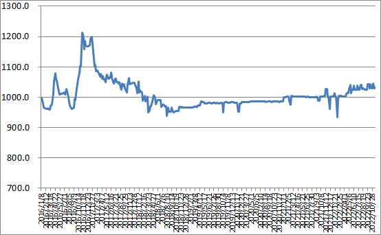 圖1 2016-2022年各周中國公路物流運價指數(shù)