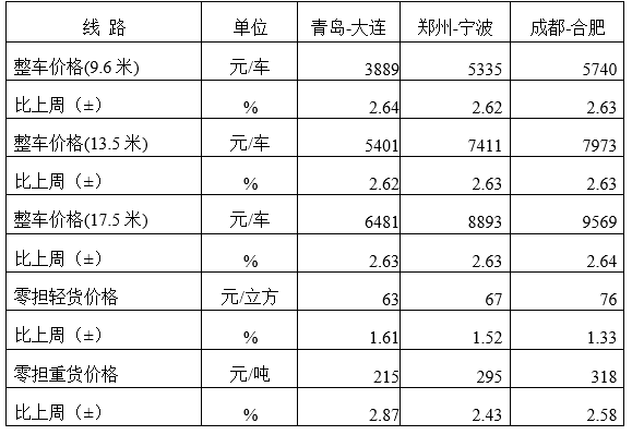 表1 本周部分線路平均價格及環(huán)比情況對比