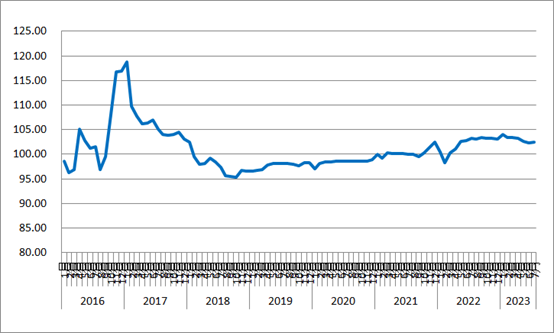 圖1 2016年以來各月中國公路物流運價指數(shù)