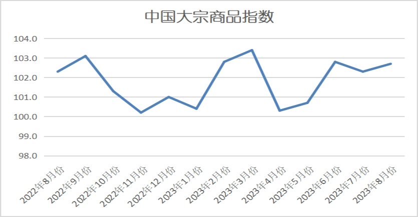 由中國物流與采購聯合會調查、發布的2023年8月份中國大宗商品指數(CBMI)為102.7%,較上月回升0.4個百分點。各分項指數中,供應指數、銷售指數和庫存指數均有所回升,銷售指數仍高于供應指數。從指數的變化情況來看,本月CBMI回升,顯示8月份大宗商品市場供需基本面綜合表現為供需雙強的局面,旺季預期向好,市場供應增速加快,商品需求持續回暖,雖庫存指數出現回升,但整體庫存量仍處于下降通道,僅是降幅出現收窄,之前供需錯配的矛盾正在持續緩和,國內大宗商品市場正在出現積極的變化。從市場運行的情況來看,8月份,全國大部高溫及局部強降雨,嚴重干擾戶外施工進展,房地產投資持續下滑,營商壞賬風險增加,大宗商品市場投機需求謹慎,現貨交易平淡,市場運行壓力一度較大。但在各項政策進一步加碼出臺、發力落實的背景下,市場人氣不斷提升,需求預期明顯好轉,大宗商品市場持續向好發展。展望9月份,當前經濟運行中不乏結構亮點,服務業快速恢復,高技術產業投資保持高速增長。8月16日召開的國務院第二次全體會議提出“確保完成全年目標任務”,凸顯出對穩增長的決心。隨著擴內需舉措落地見效,經濟有望在三季度末企穩回升,全年可以實現5%的增長目標。9月份,在宏觀政策利多的護航下,同時進入季節性施工旺季,市場供需結構將會更加合理,供需銜接將會更加順暢,大宗商品市場將會進一步向好發展運行。整體來看,一輪新的政策周期已經啟動,政策逆周期的特征在逐步強化,將有效地拉動大宗商品反彈,而在持續反彈的背后,我們認為庫存周期底部或將逐步確認,預計年內大宗商品整體仍以反彈為主。