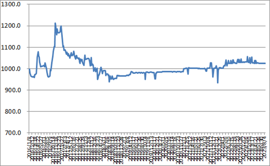 圖1 2016-2023年各周中國(guó)公路物流運(yùn)價(jià)指數(shù)