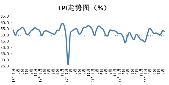 中國(guó)物流與采購(gòu)聯(lián)合會(huì)發(fā)布的2023年10月份中國(guó)物流業(yè)景氣指數(shù)為52.9%,較上月回落0.6個(gè)百分點(diǎn);中國(guó)倉(cāng)儲(chǔ)業(yè)指數(shù)為50.9%,較上月回落2.6個(gè)百分點(diǎn)。