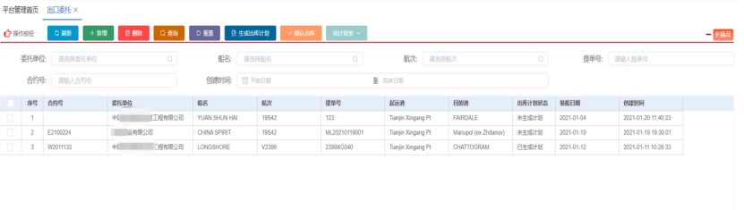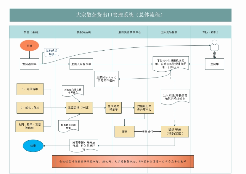 在此背景下,中外運(yùn)華北公司承接某鋼廠出口港口交接操作服務(wù),服務(wù)內(nèi)容主要包括報(bào)關(guān)、遞載、上艙單、貨物出入庫(kù)管理、裝船等多個(gè)操作環(huán)節(jié),通過(guò)不斷討論與探索,華北公司便啟動(dòng)了以某鋼為場(chǎng)景的大宗散雜貨出口系統(tǒng)建設(shè)。通過(guò)規(guī)范和完善整個(gè)業(yè)務(wù)操作流程,實(shí)現(xiàn)線(xiàn)上一體化管理,達(dá)到信息的透明化、管理的規(guī)范化、決策的智能化的目的,有利于企業(yè)不斷提升管理水平和營(yíng)收能力,為企業(yè)帶來(lái)經(jīng)濟(jì)效益和社會(huì)效益。