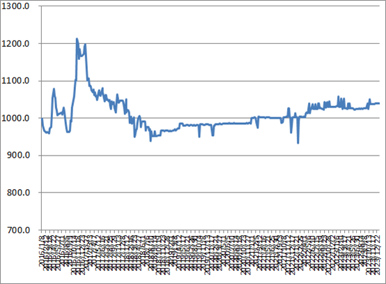 本周(2024年1月8日-1月12日),由中國物流與采購聯合會和林安物流集團聯合調查的中國公路物流運價指數為1038.89點,比上周回落0.07%。