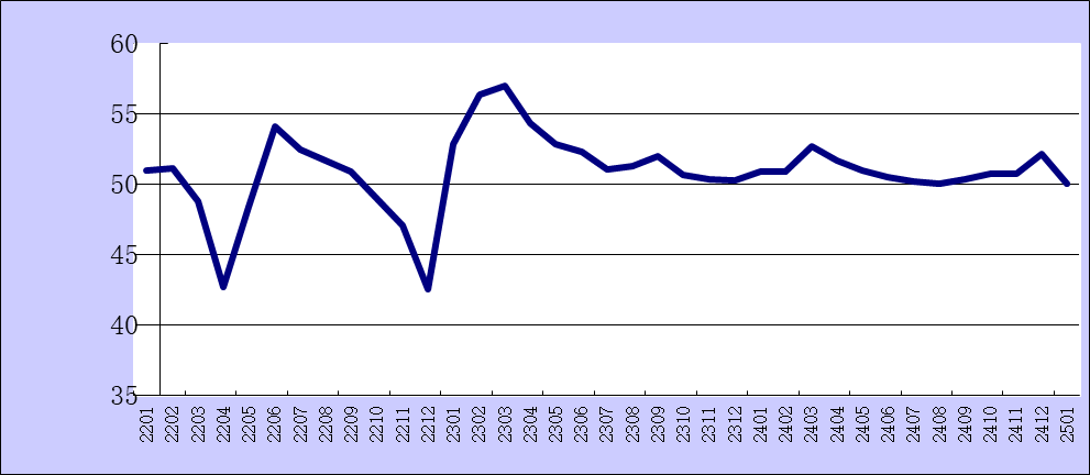 中國物流與采購聯合會、國家統計局服務業調查中心采購經理調查發布的2025年1月份綜合PMI產出指數為50.1%,比上月下降2.1個百分點。該指數是PMI指標體系中反映當期全行業(制造業和非制造業)產出變化情況的綜合指數,由制造業生產指數與非制造業商務活動指數加權求和而成,權數分別為制造業和非制造業占GDP的比重。