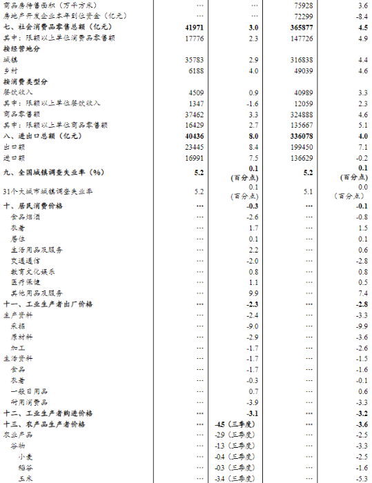 總的來看,前三季度穩(wěn)就業(yè)穩(wěn)經(jīng)濟政策舉措接續(xù)發(fā)力,主要宏觀指標總體平穩(wěn),經(jīng)濟運行保持穩(wěn)中有進態(tài)勢,高質(zhì)量發(fā)展取得積極成效。也要看到,當前經(jīng)濟運行仍面臨不少風險挑戰(zhàn),外部不穩(wěn)定不確定因素較多,國內(nèi)經(jīng)濟回升向好基礎(chǔ)仍需加力鞏固。下階段,要堅持以習近平新時代中國特色社會主義思想為指導,全面貫徹落實黨中央決策部署,堅持穩(wěn)中求進工作總基調(diào),推動更加積極有為的宏觀政策落地增效,著力穩(wěn)就業(yè)、穩(wěn)企業(yè)、穩(wěn)市場、穩(wěn)預期,扎實推動高質(zhì)量發(fā)展,促進經(jīng)濟持續(xù)健康發(fā)展。