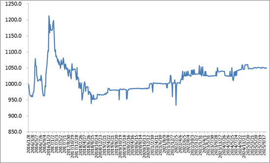 圖1 2016年以來各周中國公路物流運價指數(shù)