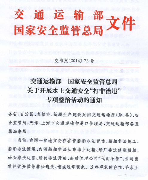 交通運輸部 國家安全監管總局關于開展水上交通安全“打非治違”專項整治活動的通知