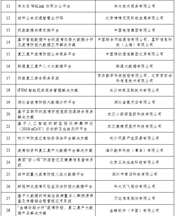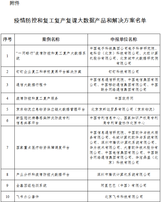 工業和信息化部辦公廳關于公布支撐疫情防控和復工復產復課大數據產品和解決方案的通知