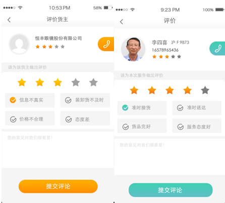 完成訂單之后,貨主和司機也可以互相評價,其他用戶在后面交易的時候也可以參考這些評價,然后篩選出可靠貨源或者司機,這些評價最后都會納入用戶行為數據庫。