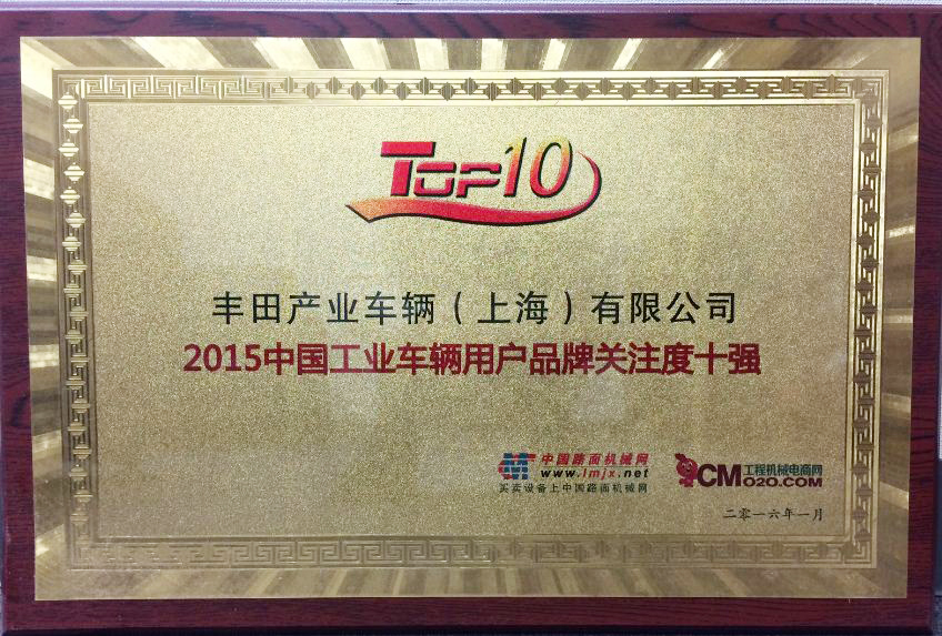 由中國工程機械網及工程機械電商網聯合推選的“2015中國工程機械用戶品牌關注度排行榜”近日公布,經過客觀公正的評選,豐田叉車繼去年第一屆評選之后再度榮膺“中國工業車輛用戶品牌關注度十強”。