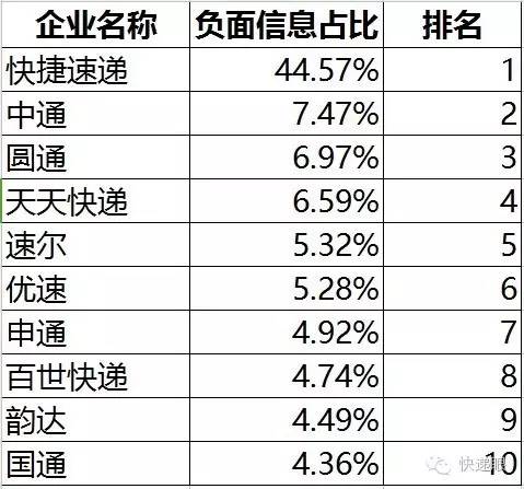第一名天天快遞:負面輿情總量排名第一,負面輿情占其自身信息量比例排名第四,天天快遞和宅急送非法運輸違禁品 紹興4名快遞小哥被刑拘被多次轉載,此外,負面輿情多涉及包裹延誤等信息。