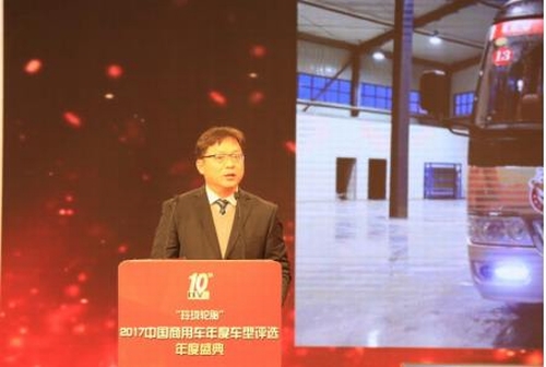 【清華大學汽車工程學院常務副院長宋健、北京航空航天大學交通科學學院副院長徐向陽為福田歐馬可、宇通客車頒發(fā)2017中國商用車年度創(chuàng)新車型大獎】