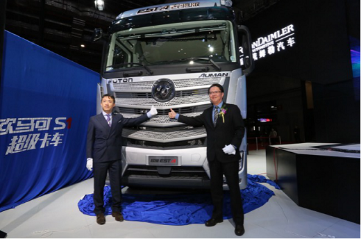 2017年4月19日,第十七屆上海國際汽車工業展覽會正式拉開帷幕。福田戴姆勒汽車攜搭載康明斯X12超級智能動力的歐曼EST-A 6X4牽引車、搭載梅賽德斯-奔馳家族“明星動力”OM457的歐曼EST-A 4X2牽引車兩款超級卡車;以及康明斯X12超級智能動力、梅賽德斯-奔馳OM457發動機一同展出;福田戴姆勒汽車以同步世界技術標準的“兩款整車及兩款發動機”的強大陣容吸睛上海車展;作為本屆上海車展唯一亮相的超級卡車,歐曼EST超級卡車以突破科技的姿態,引領高端重卡技術發展潮流。