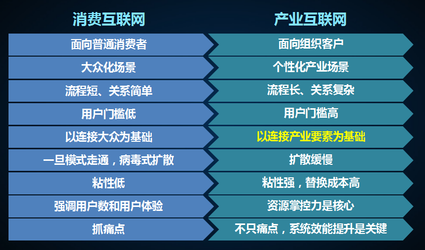產(chǎn)業(yè)領(lǐng)域的互聯(lián)網(wǎng)化相對更專業(yè),需要更加深入的積累和研究。行業(yè)經(jīng)驗、渠道、網(wǎng)絡(luò)、產(chǎn)品認(rèn)知等壁壘讓傳統(tǒng)消費互聯(lián)網(wǎng)巨頭優(yōu)勢,千萬不可用消費互聯(lián)網(wǎng)的想法干產(chǎn)業(yè)互聯(lián)網(wǎng)的事。