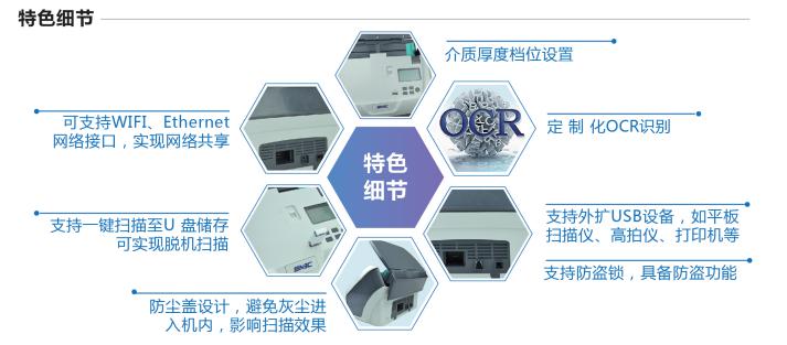 BSC-5280在設(shè)計(jì)時(shí)添加了一些特殊設(shè)計(jì)的“小心機(jī)”,讓用戶(hù)能夠獲得更好的人機(jī)互動(dòng)體驗(yàn)。比如說(shuō),BSC-5280 ADF容紙器面板上嵌有小滑輪設(shè)計(jì),能夠減少摩擦,保證掃描過(guò)程中走紙順暢;逼紙板有效長(zhǎng)度能達(dá)到8厘米,確保加長(zhǎng)紙掃描能夠順利進(jìn)行;采用防塵蓋設(shè)計(jì),避免灰塵進(jìn)入機(jī)器內(nèi)部,有效延長(zhǎng)機(jī)器壽命;可附加外擴(kuò)多種USB設(shè)備,無(wú)論是平板掃描儀、高拍儀還是打印機(jī)均可鏈接使用。