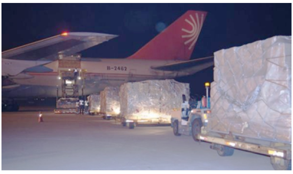 9月27日早6時,友和道通航空全貨包機搭載著中國政府捐贈至尼泊爾的援助物資,沿“武漢—天津—加德滿都”航線順利起飛。23日至25日期間,援助物資分三批陸續到達天津機場。友和道通航空公司協助天津機場貨運,實現了從交貨、報關報檢、庫房操作、機坪裝卸、航服航務的“一站式”服務,順利完成此次包機5350件共計92298公斤貨物的保障任務。友和道通航空救援物資的順利運輸,為尼泊爾救援行動保駕護航。